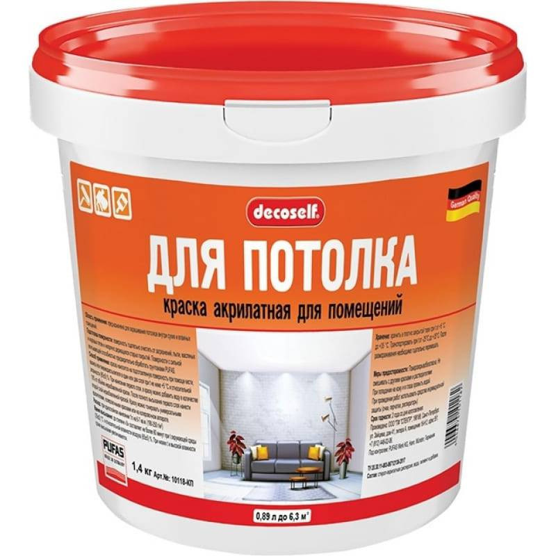 Купить Краска для потолков Pufas Decoself КП морозостойкая 0,9 л/1,4 кг по лучшей цене с доставкой - интернет магазин №1 в России