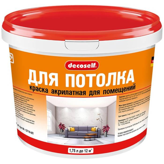 Купить Краска для потолков Pufas Decoself КП морозостойкая 1,74 л/2,7 кг по лучшей цене с доставкой - интернет магазин №1 в России