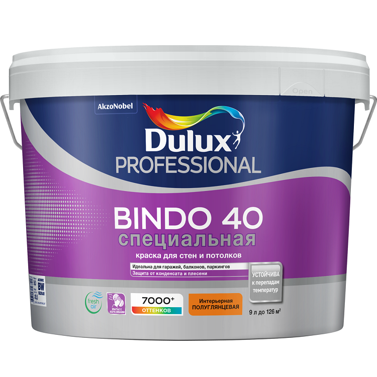 Купить Краска для стен и потолков Dulux Professional Bindo 40 база BW полуглянцевая 9 л по лучшей цене с доставкой - интернет магазин №1 в России