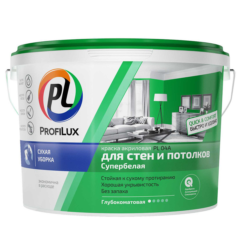 Купить Краска для стен и потолков Profilux PL-04А акриловая глубокоматовая белая 1,4 кг по лучшей цене с доставкой - интернет магазин №1 в России
