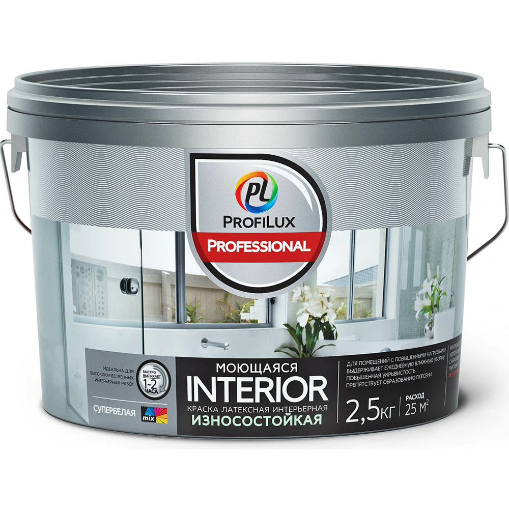 Купить Краска для стен и потолков Profilux Professional Interior моющаяся матовая 2,5 кг по лучшей цене с доставкой - интернет магазин №1 в России