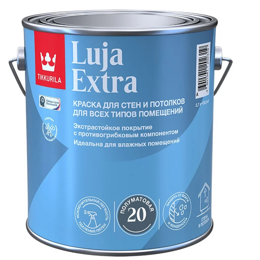 Купить Краска для стен и потолков Tikkurila Luja Extra База C экстра-стойкая полуматовая 2,7 л по лучшей цене с доставкой - интернет магазин №1 в России