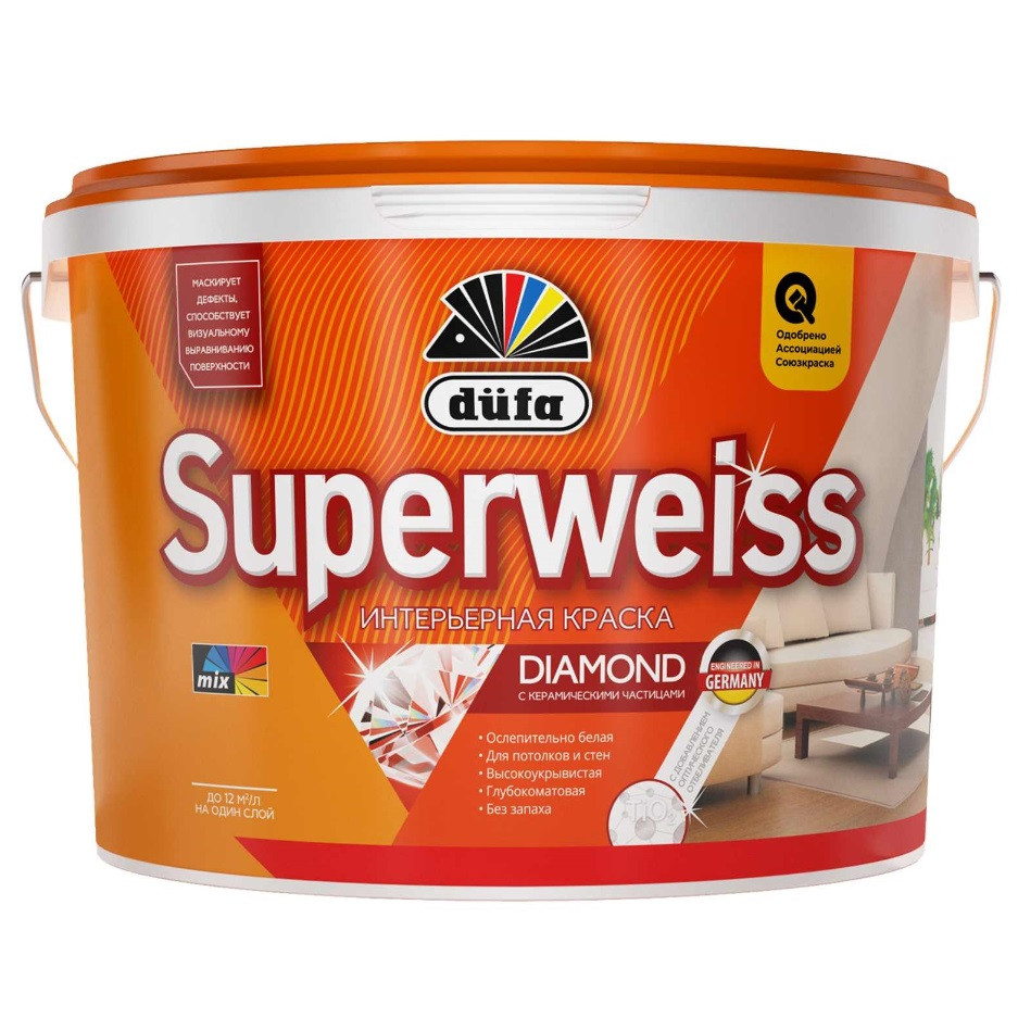 Купить Краска для стен и потолков водно-дисперсионная Dufa Superweiss RD4 глубокоматовая белая 9 л по лучшей цене с доставкой - интернет магазин №1 в России