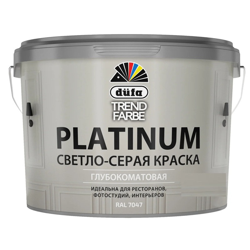 Купить Краска для стен и потолков водно-дисперсионная Dufa Trend Farbe Platinum глубокоматовая RAL7047 светло-cерая 10 л по лучшей цене с доставкой - интернет магазин №1 в России