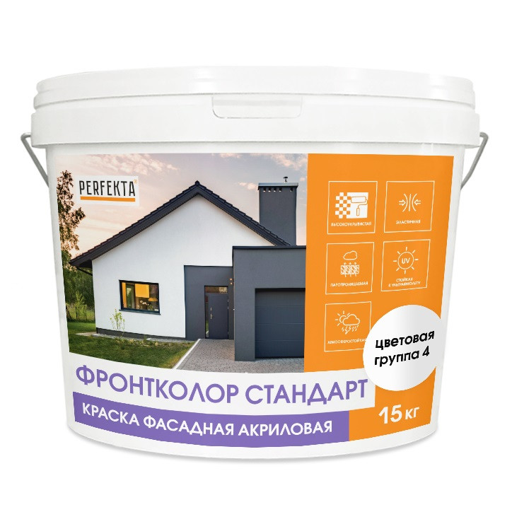 Купить Краска фасадная акриловая Perfekta Фронтколор Стандарт цветовая группа 4 15 кг по лучшей цене с доставкой - интернет магазин №1 в России