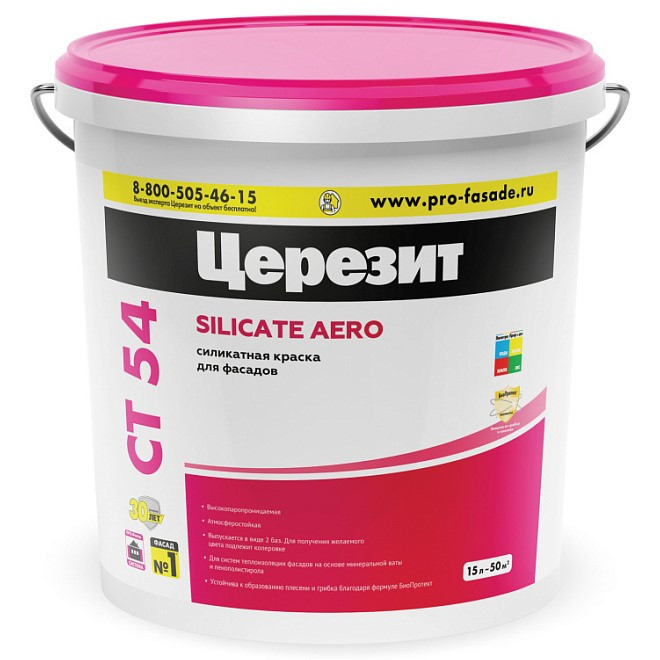 Купить Краска фасадная Ceresit СТ 54 матовая база A 15 л по лучшей цене с доставкой - интернет магазин №1 в России