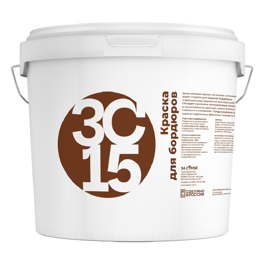 Купить Краска фасадная для бордюров Застрой ЗС 15 белая матовая 45 кг по лучшей цене с доставкой - интернет магазин №1 в России