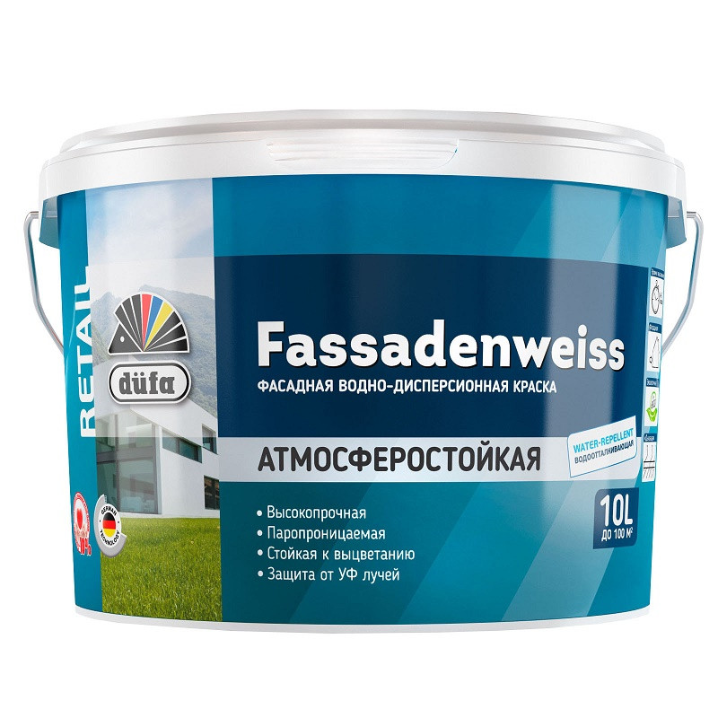 Купить Краска фасадная Dufa Retail Fassadenweiss атмосферостойкая база 1 2,5 л по лучшей цене с доставкой - интернет магазин №1 в России