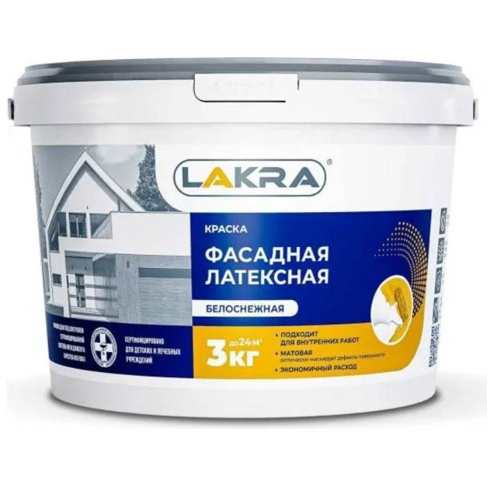 Купить Краска фасадная латексная Лакра белоснежная 3 кг по лучшей цене с доставкой - интернет магазин №1 в России