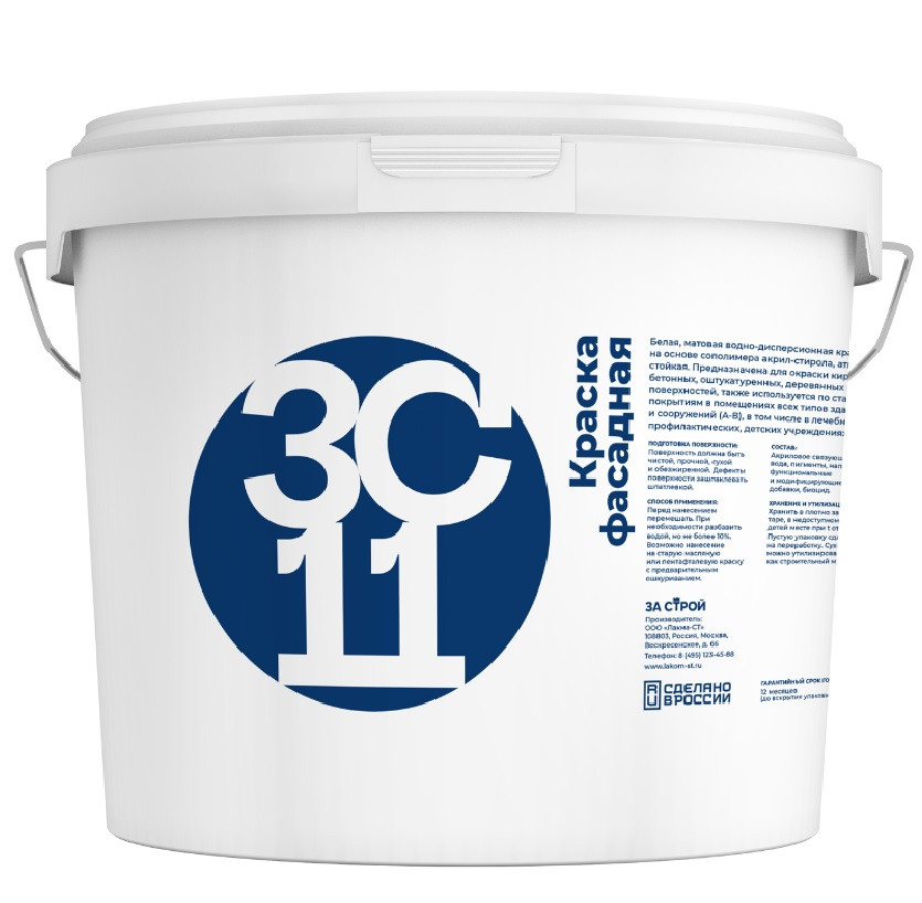 Купить Краска фасадная водно-дисперсионная Застрой ЗС 11 белая матовая 45 кг по лучшей цене с доставкой - интернет магазин №1 в России