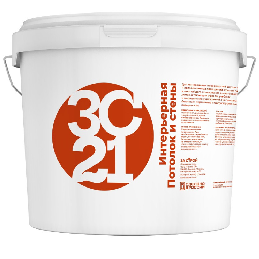 Купить Краска интерьерная для потолков и стен Застрой ЗС 21 белая матовая 25 кг по лучшей цене с доставкой - интернет магазин №1 в России