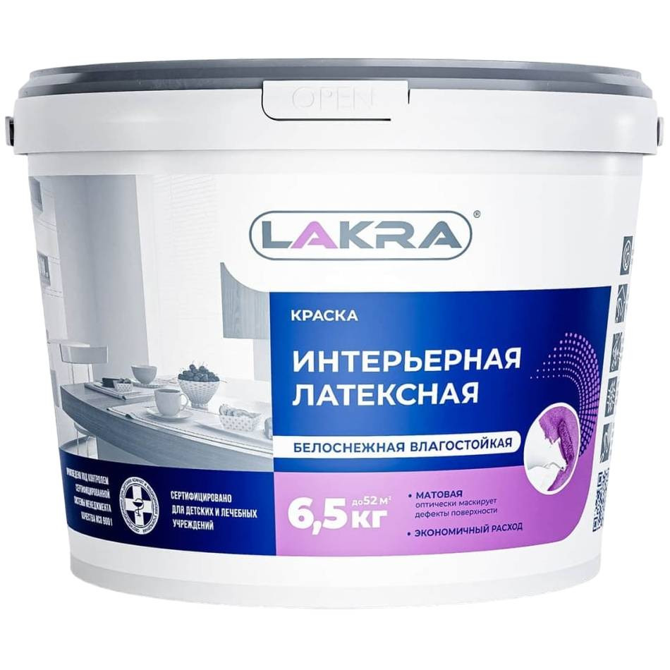 Купить Краска интерьерная латексная Лакра влагостойкая белоснежная 6,5 кг по лучшей цене с доставкой - интернет магазин №1 в России