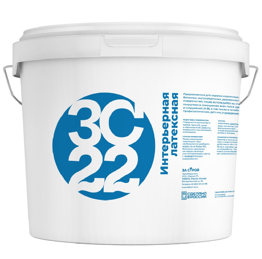 Купить Краска интерьерная латексная Застрой ЗС 22 матовая белая 45 кг по лучшей цене с доставкой - интернет магазин №1 в России