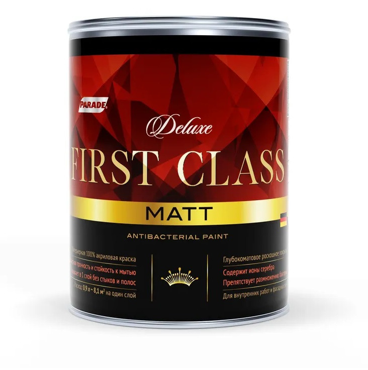 Купить Краска интерьерная Parade Deluxe First Class матовая база А 0,9 л по лучшей цене с доставкой - интернет магазин №1 в России