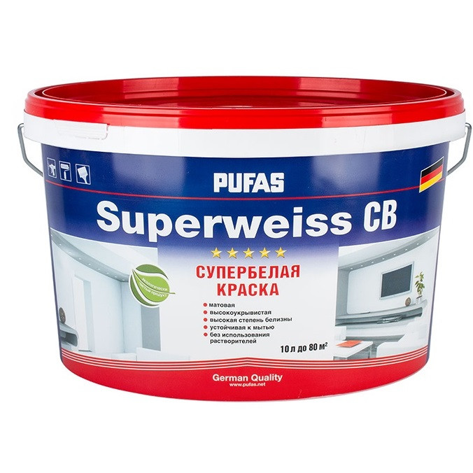 Купить Краска интерьерная Pufas Superweiss СВ морозостойкая супербелая 10 л/15,8 кг по лучшей цене с доставкой - интернет магазин №1 в России