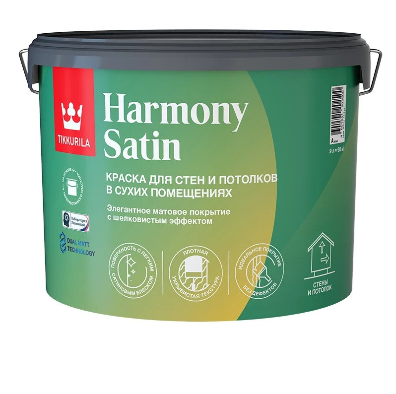 Купить Краска интерьерная Tikkurila Harmony Satin База C матовая 9 л по лучшей цене с доставкой - интернет магазин №1 в России