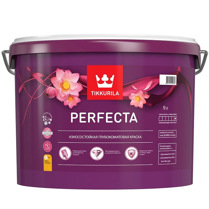 Купить Краска интерьерная Tikkurila Perfecta база C глубокоматовая 9 л по лучшей цене с доставкой - интернет магазин №1 в России