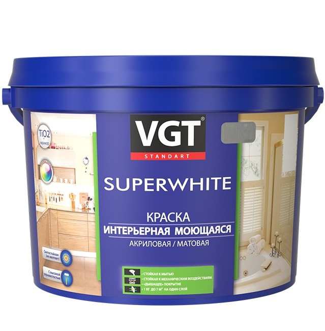 Купить Краска интерьерная VGT ВД-АК-1180 моющаяся база С 6 кг по лучшей цене с доставкой - интернет магазин №1 в России