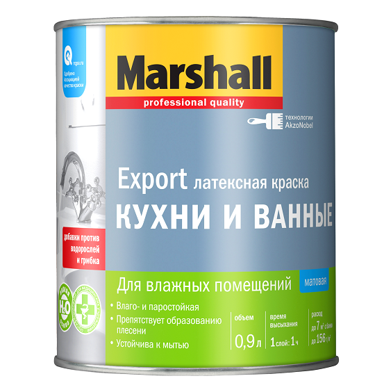 Купить Краска Marshall Export база BW для кухни и ванной матовая 0,9 л по лучшей цене с доставкой - интернет магазин №1 в России