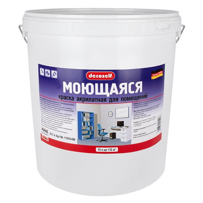 Купить Краска моющаяся Pufas Decoself морозостойкая белая 15 л/23,1 кг по лучшей цене с доставкой - интернет магазин №1 в России