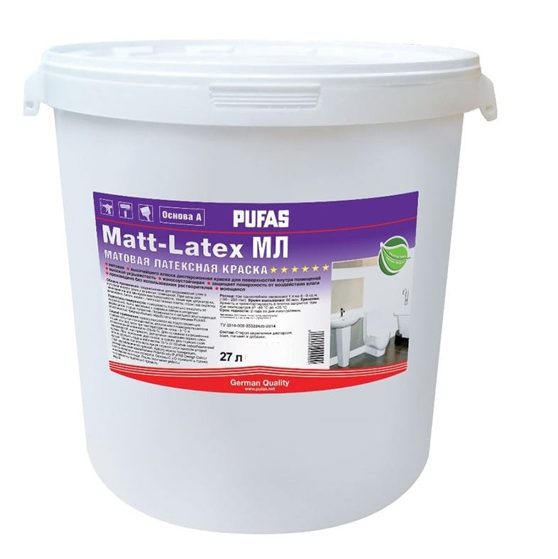 Купить Краска моющаяся Pufas Matt-Latex МЛ D морозостойкая 27 л/34,56 кг по лучшей цене с доставкой - интернет магазин №1 в России