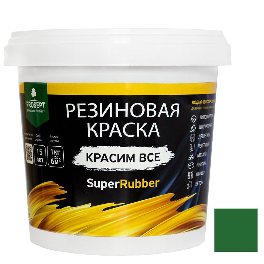 Купить Краска резиновая Prosept SuperRubber 071-1 зеленый мох Ral 6005 1 кг по лучшей цене с доставкой - интернет магазин №1 в России