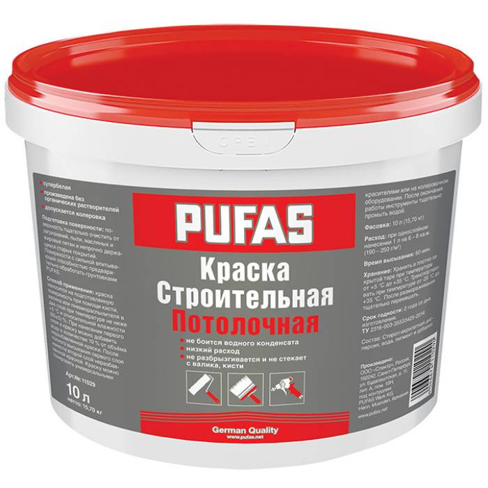 Купить Краска строительная для потолков Pufas морозостойкая 10 л/15,8 кг по лучшей цене с доставкой - интернет магазин №1 в России