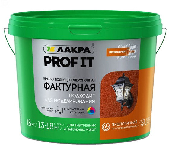 Купить Краска водно-дисперсионная фактурная Лакра Prof It белая матовая 18 кг по лучшей цене с доставкой - интернет магазин №1 в России