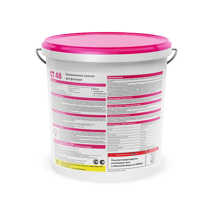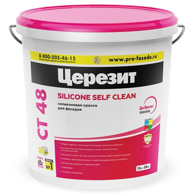 Купить Краска воднодисперсионная силиконовая Ceresit CT 48 фасадная база А 15 л по лучшей цене с доставкой - интернет магазин №1 в России