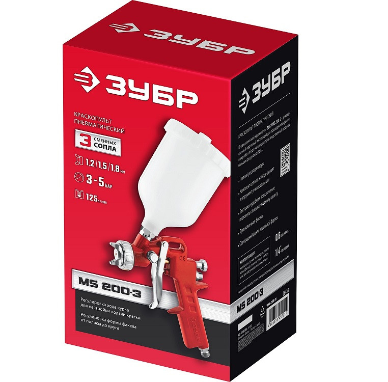 Купить Краскопульт пневматический Зубр MS 200-3 с верхним бачком 06458 по лучшей цене с доставкой - интернет магазин №1 в России
