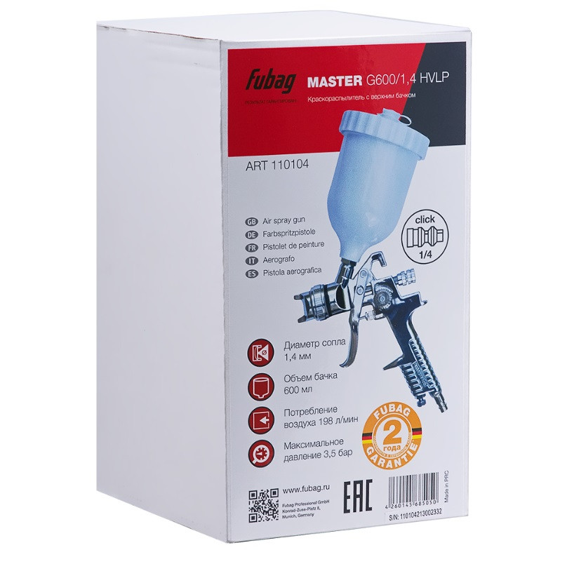 Купить Краскораспылитель Fubag Master G600/1.4 HVLP 110104 по лучшей цене с доставкой - интернет магазин №1 в России