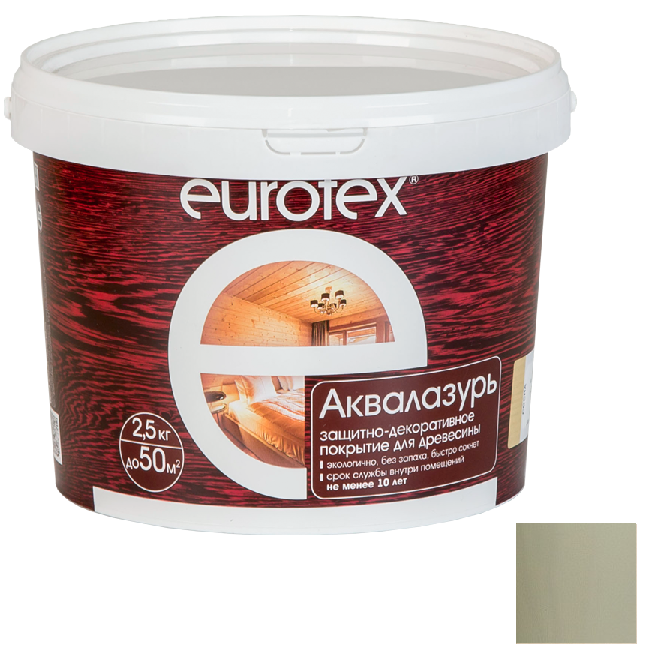 Купить Лак-антисептик акриловый Eurotex Аквалазурь олива 2,5 кг по лучшей цене с доставкой - интернет магазин №1 в России