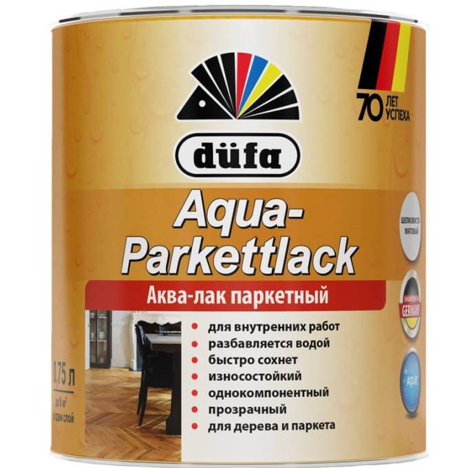 Купить Лак паркетный на водной основе Dufa Aqua-Parkettlack глянцевый 0,75 л по лучшей цене с доставкой - интернет магазин №1 в России