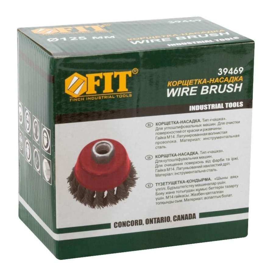 Купить Корщетка-чашка Fit 39469 стальная витая гайка М14 125 мм по лучшей цене с доставкой - интернет магазин №1 в России