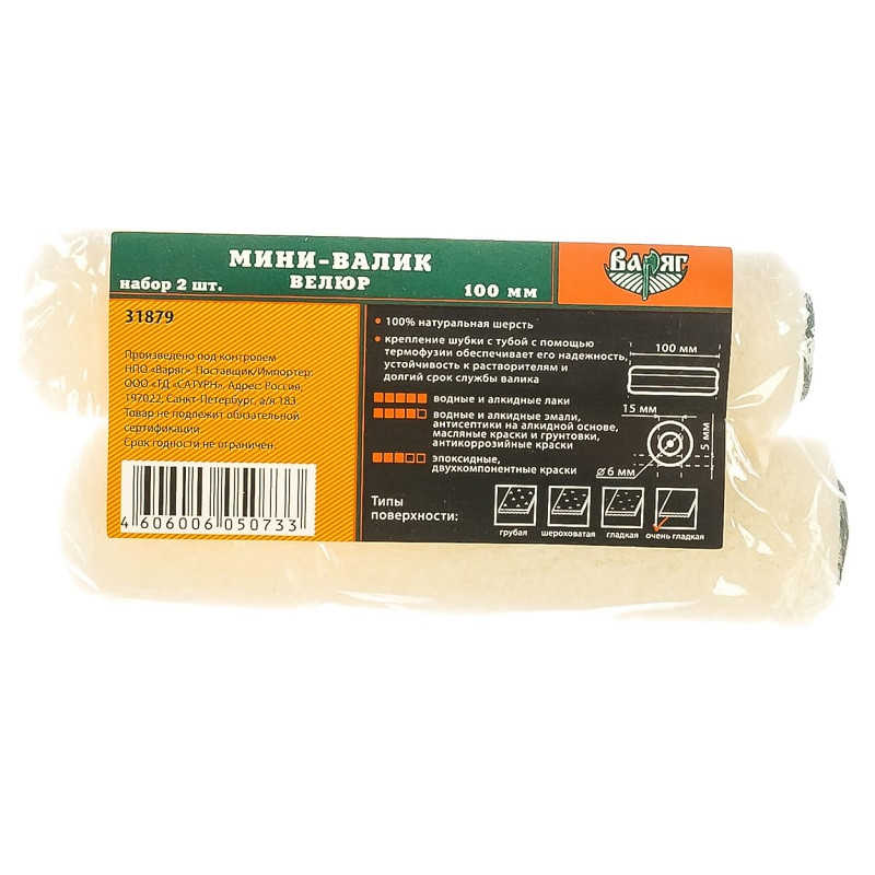 Купить Мини-валик сменный Варяг 31879 2 шт по лучшей цене с доставкой - интернет магазин №1 в России