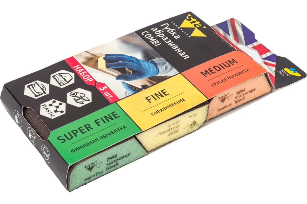 Купить Набор абразивных губок Sia Abrasives siasponge Combi ssp-combi-3 3 шт по лучшей цене с доставкой - интернет магазин №1 в России