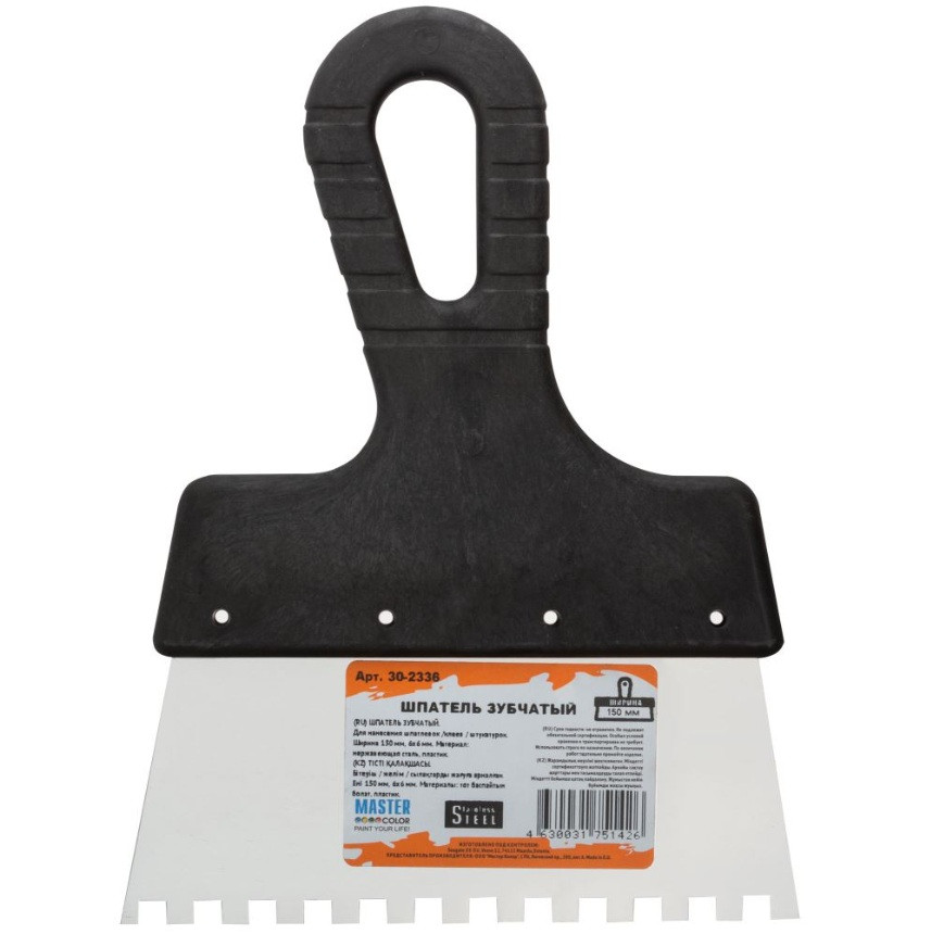 Купить Шпатель зубчатый Master Color 30-2336 150 мм зуб 6х6 мм по лучшей цене с доставкой - интернет магазин №1 в России