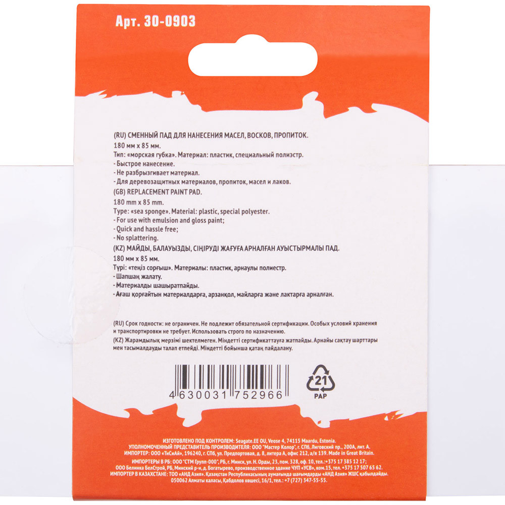 Купить Сменный блок пада Master Color 30-0903 Морская губка для работы с пропитками и маслами 180х85 мм по лучшей цене с доставкой - интернет магазин №1 в России