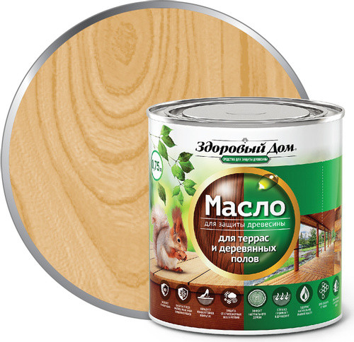 Купить Масло деревозащитное Здоровый дом для террас и полов Дуб 0,75 л по лучшей цене с доставкой - интернет магазин №1 в России