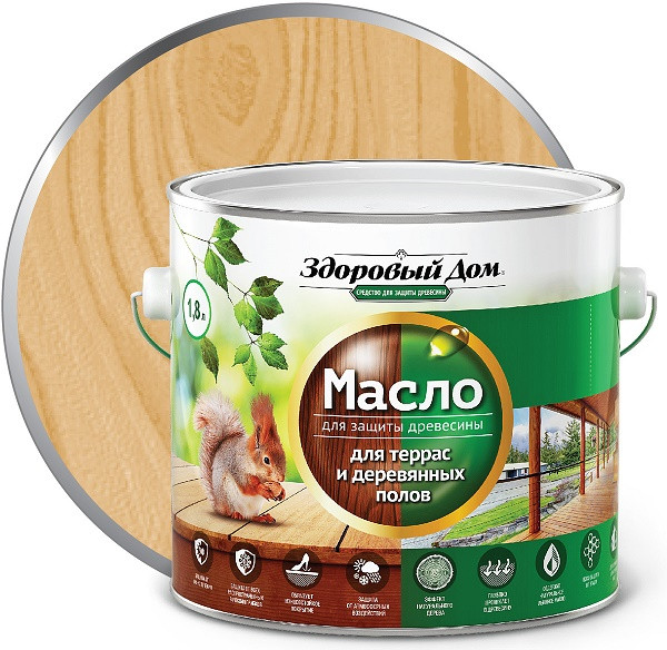 Купить Масло деревозащитное Здоровый дом для террас и полов Дуб 1,8 л по лучшей цене с доставкой - интернет магазин №1 в России