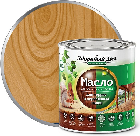 Купить Масло деревозащитное Здоровый дом для террас и полов Орех 0,75 л по лучшей цене с доставкой - интернет магазин №1 в России