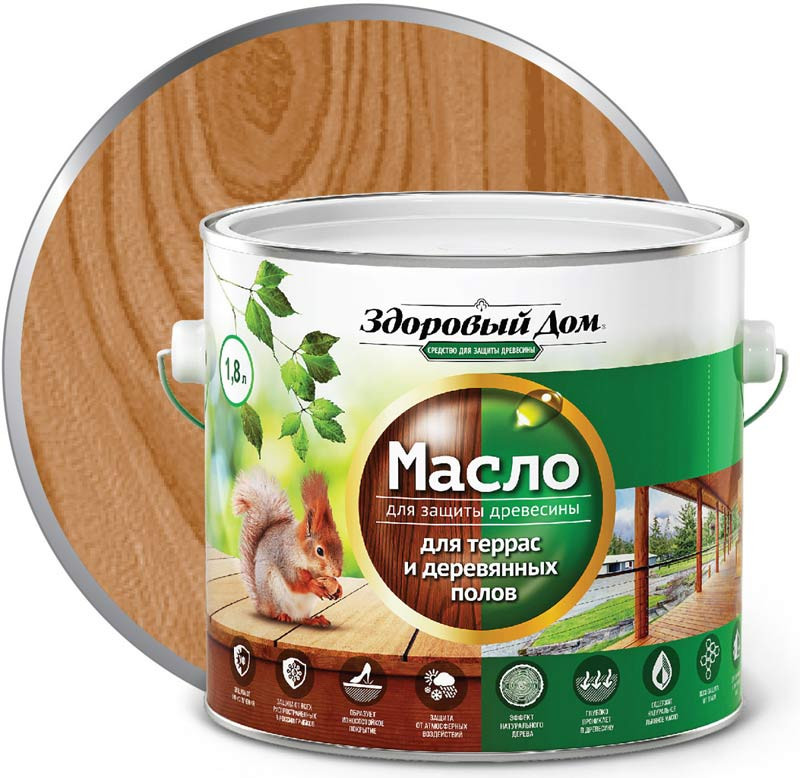 Купить Масло деревозащитное Здоровый дом для террас и полов Орех 1,8 л по лучшей цене с доставкой - интернет магазин №1 в России