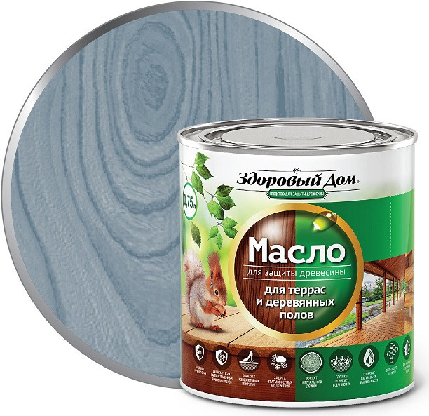 Купить Масло деревозащитное Здоровый дом для террас и полов серо-голубое 1,8 л по лучшей цене с доставкой - интернет магазин №1 в России