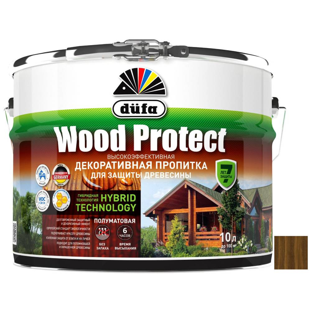 Купить Пропитка декоративная для защиты древесины Dufa Wood Protect орех 9 л по лучшей цене с доставкой - интернет магазин №1 в России