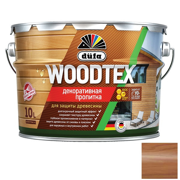 Купить Пропитка декоративная для защиты древесины Dufa Woodtex Тик 9 л по лучшей цене с доставкой - интернет магазин №1 в России