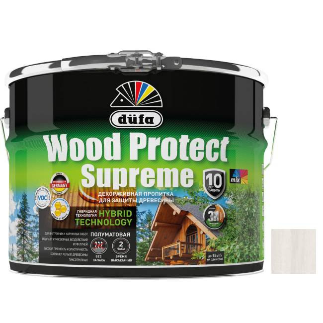 Купить Пропитка для древесины Dufa Wood Protect Supreme белая 9 л по лучшей цене с доставкой - интернет магазин №1 в России