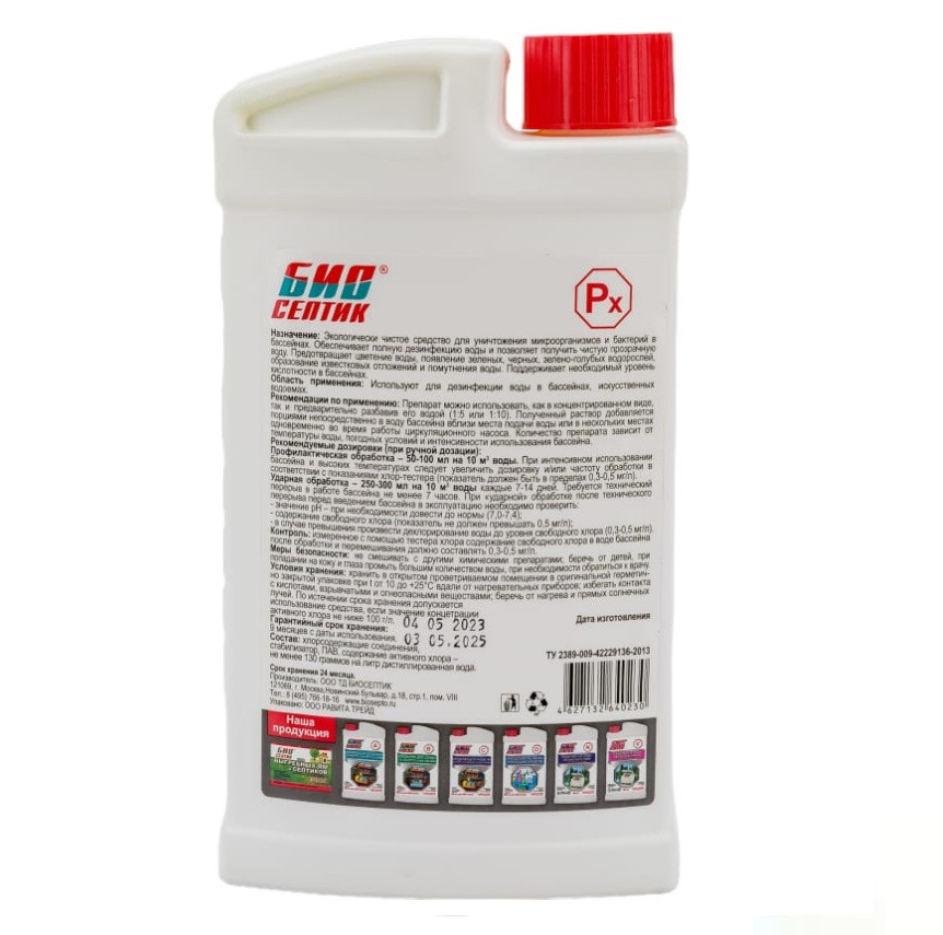 Купить Очиститель бассейнов Биосептик Px хлорсодержащий 960 мл по лучшей цене с доставкой - интернет магазин №1 в России