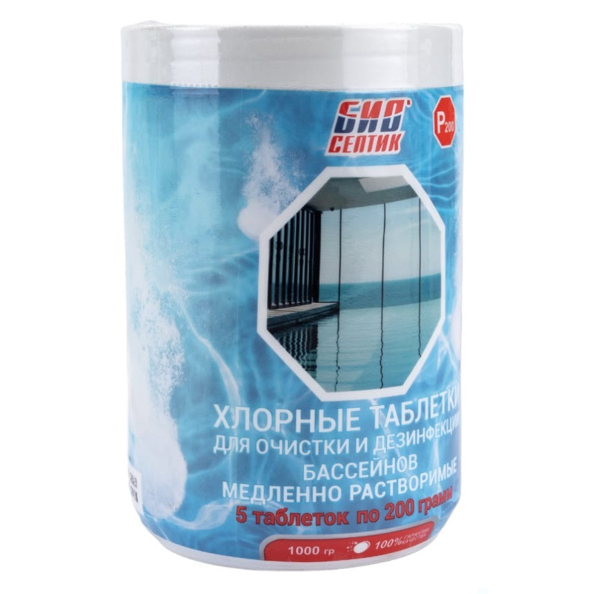 Купить Таблетки для очистки и дезинфекции бассейнов Биосептик P200 медленно растворимые хлорные 200 г 5 шт по лучшей цене с доставкой - интернет магазин №1 в России