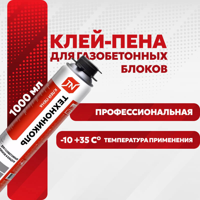 Купить Клей-пена ТЕХНОНИКОЛЬ для газобетонных блоков и кладки 900 г V203 по лучшей цене с доставкой - интернет магазин №1 в России