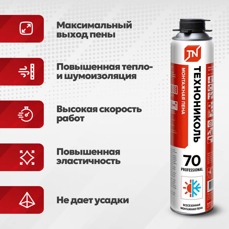 Купить Пена монтажная ТЕХНОНИКОЛЬ 70 PROFESSIONAL всесезонная V356 по лучшей цене с доставкой - интернет магазин №1 в России